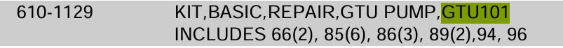GTU101, 610-1129 Rebuild Kit with Valves for Jenny / Emglo /Dewalt GT, GTU Pumps
